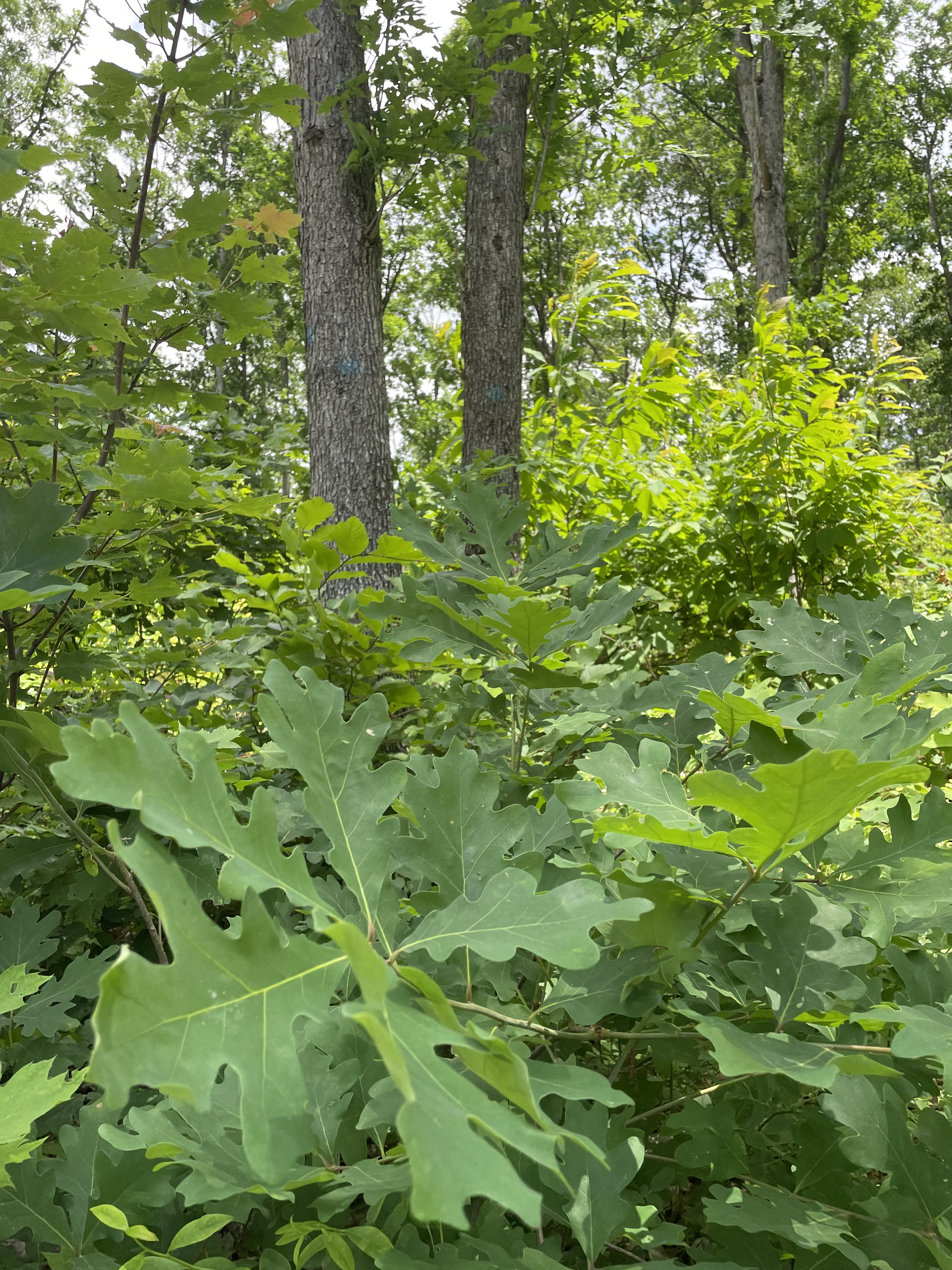 Competing species in the white oak range are shading out young white oaks thus preventing regeneration, resulting in a non-sustainable demographic dominated by older trees. Dr. Jeff Larkin is a professor of Wildlife Ecology and Conservation at IUP, as well as the Forest Bird Habitat Coordinator for the American Bird Conservancy. He says: it's just as important for landowners and forest managers to 'look down' as it is to 'look up' when it comes to oak forest management and stewardship. These photos, taken by Dr. Larkin, demonstrate white oak regeneration within the forest understory.