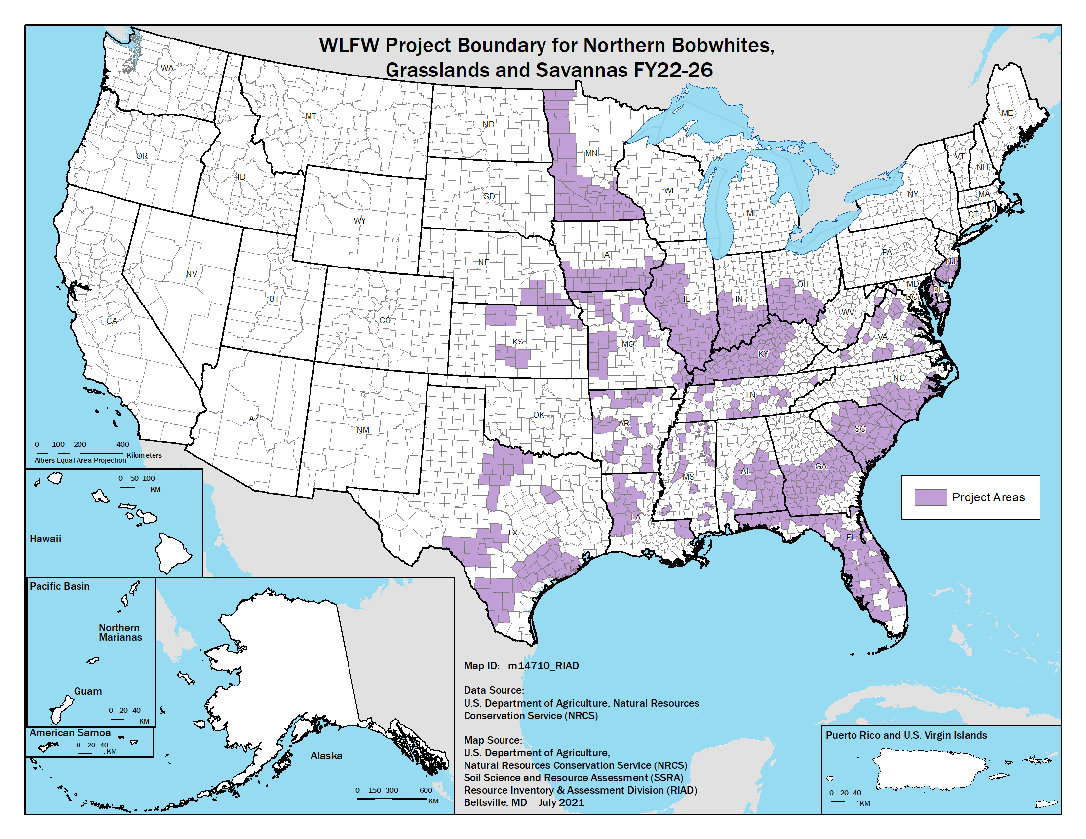 WLFW Northern bobwhite, Grasslands, and Savannas National Map