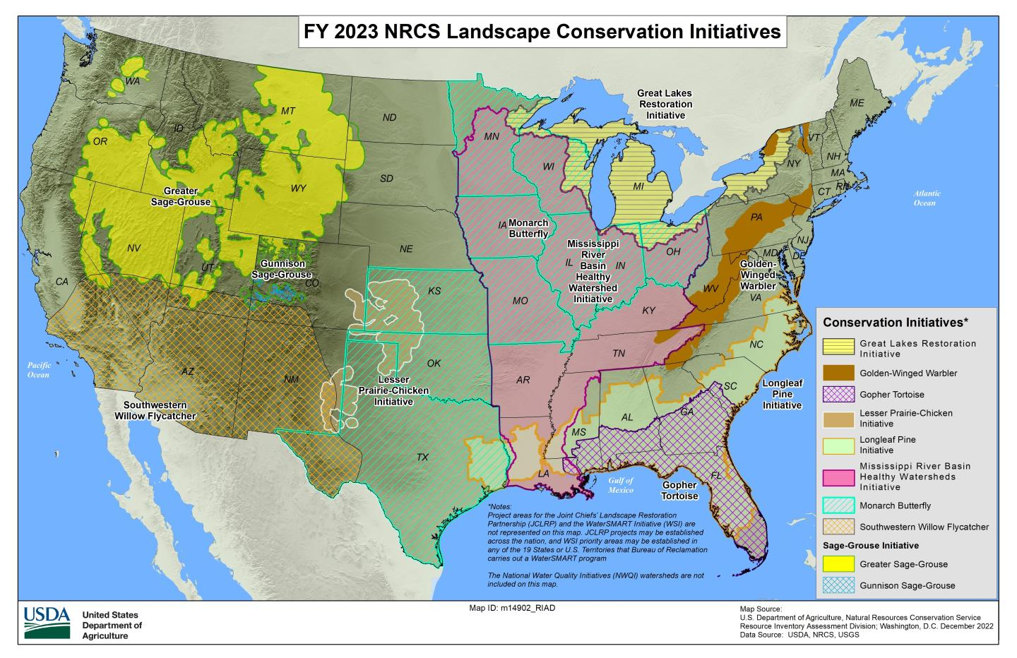 Map of FY 2023 NRCS Landscape Conservation Initiatives